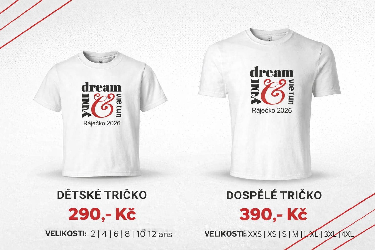 👕 Účastnická trička jsou UNISEX a objednat si je můžete rovnou při registraci.
